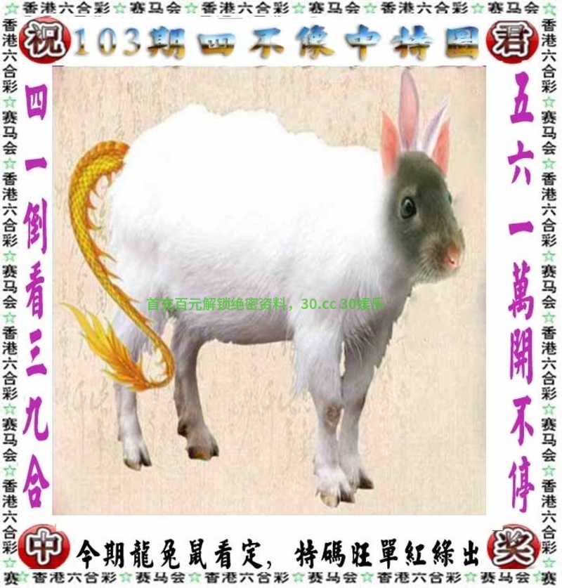 103期羊猴兔鼠狗龙蛇马】开:牛41准